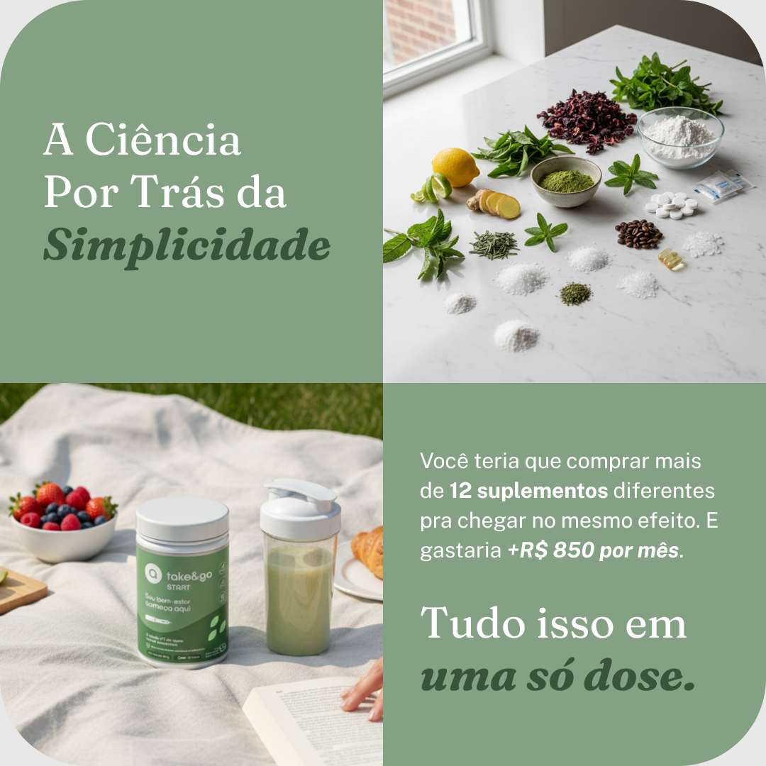 Sim, o Take&Go Start é compatível com a maioria dos suplementos. Porém, recomendamos consultar seu médico ou nutricionista antes de combinar com outros produtos.